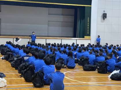 校長先生のお話、生徒代表のあいさつ、そして3日間お世話になる旅行社の方や写真屋さんの紹介を終え、そろそろバスに乗車します。
