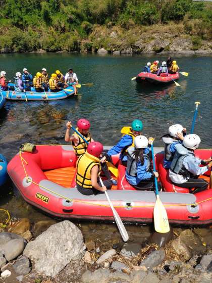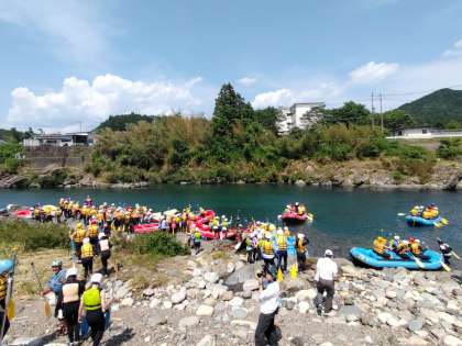 ラフティング出発しました。みんなワクワク!