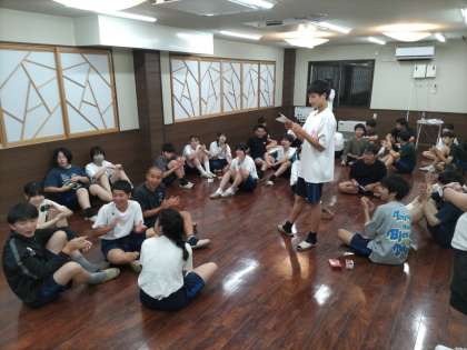学級レクリエーションのようす。ダンスやクイズやゲーム。