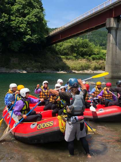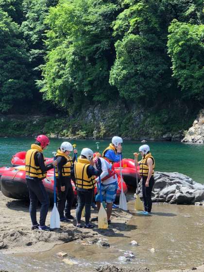 ラフティングのようすです。今日も暑いので、水がとても気持ち良いです。