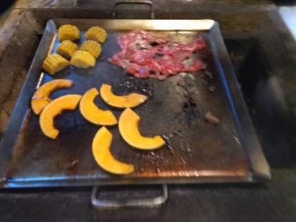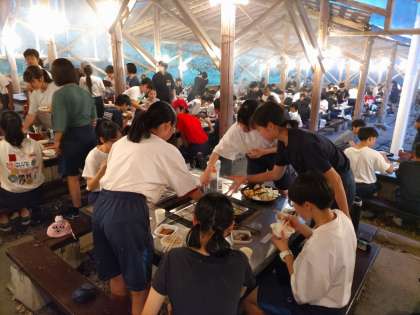 本日の夕食はバーベーキュー。お肉もおかわりできました。食後のデザートは、ハーゲンダッツのアイスクリーム。大満足の夕食でした。