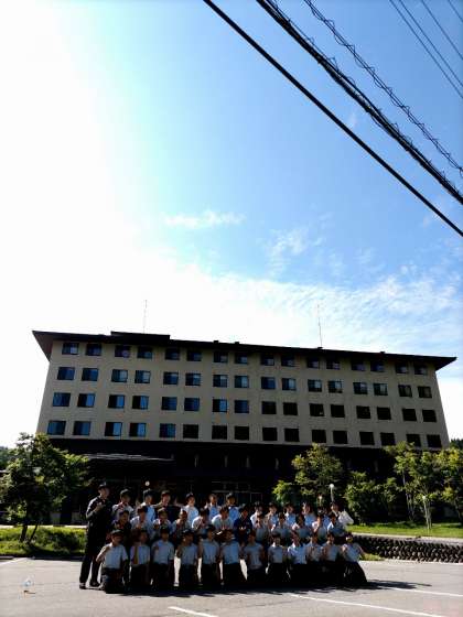 出発前に、学級写真を撮りました。みんな、いい笑顔です。
