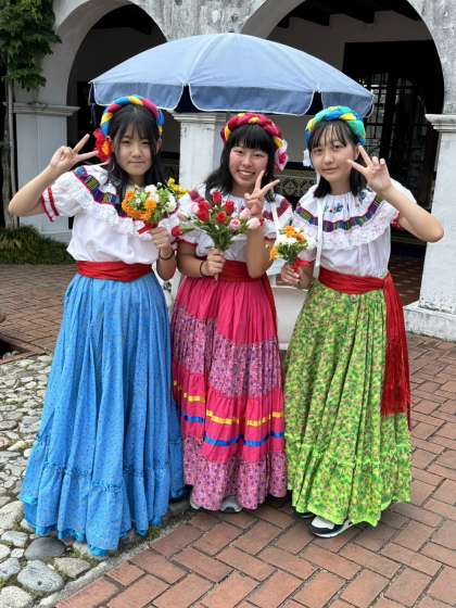 リトルワールドでの活動のようすです。みんな揃って変身!