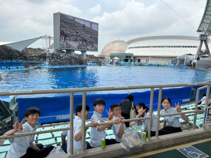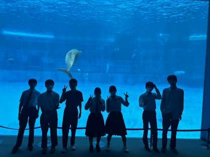 名古屋港水族館での活動のようすです。海の生きものに見とれています。