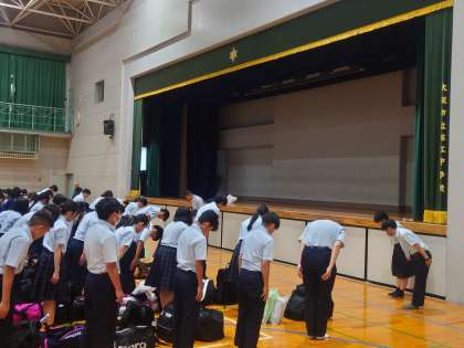 校長先生から、たくさんの保護者の方がお迎えに来ていただき、天候がくずれることもなく、本当に恵まれてた修学旅行であった、感謝の気持ちを持つことが大事であるとのお話がありました。しかし、多くの3年生はルールやマナーを守った行動はとれましたが、一部では課題があった。それを今後の中学校生活に生かしてことが、なにより大切であるとのお話もありました。この話を心に留めてくださいね!よろしくお願いします。