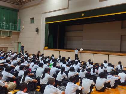 生徒代表からも、この3日間のいい面も課題も含めた経験を残りの中学校生活に生かしましょうとの話が、学年主任の谷本先生からも、修学旅行での成果と課題、明日以降に向けた連絡等が行われました。みなさんお疲れさまでした!