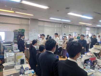 教育実習生の、教職員へのあいさつの様子です。7人の実習生にとっては、初めての、そして大変大きな経験であったと思います。この3週間で得たものを、これからの人生に生かしてください。そして、いい先生になってくださいね!