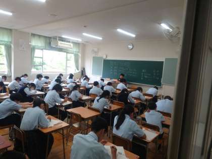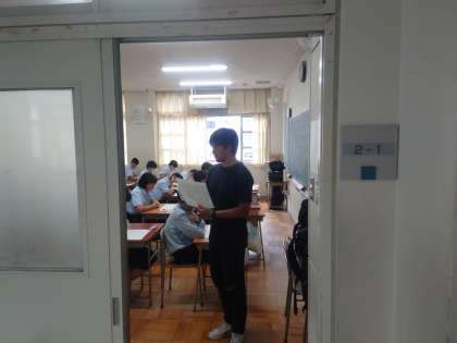 1年生と3年生が数学、技術・家庭科、音楽の3教科、2年生は数学と音楽の2教科のテストを行っています。本日もテスト開始直前まで復習をしていました。あきらめず最後まで頑張りましょう。加えて、各教科の提出物も示されています。提出の方も忘れずに。