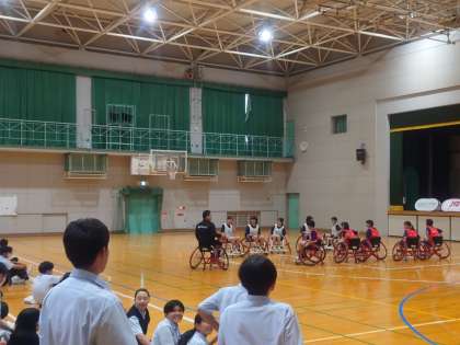 本日2年生は、パラリンピックに男子車いすバスケットボール日本代表として4大会出場した神保講師をお招きし、共生社会を目指すために、自分たちに何ができるかを学習しました。