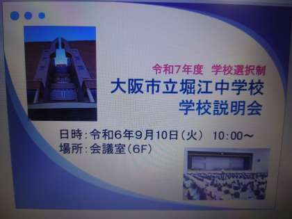 学校選択制説明会を9月10日(火)10:00より本校6階会議室で行います。説明会後、校舎内の見学を行っていただけます。