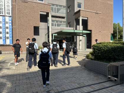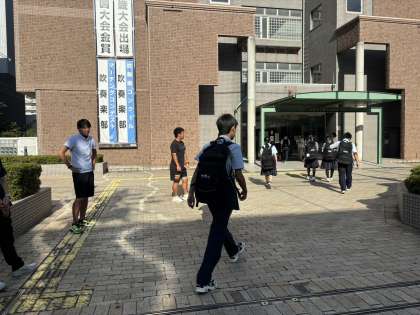 本日は天気も良く、徐々に気温も高くなっていますが、堀江中学校の生徒たちは元気に登校しています。