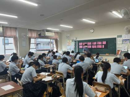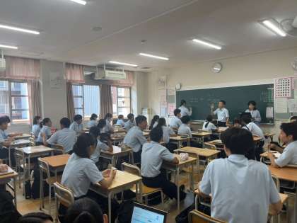 1限目に3日(火)に実施された中学生チャレンジのアンケート調査を、学習用端末を使って実施しました。その後、他学年に続いて3年生も体育大会のメンバー決めを行いました。最後の体育大会を思い出に残るものにしましょう!