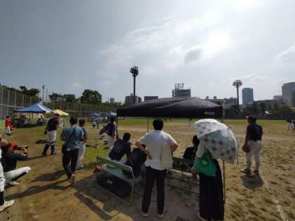 松島球場で、区PTAソフトボール大会が開催されています。写真は、本校PTAチームと日吉小学校PTAチームとの試合のひとコマです。選手、スタッフの皆様の健闘に敬意を表します。