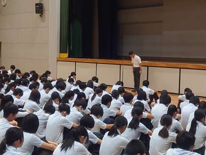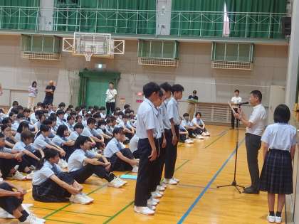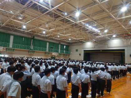 校長先生より、1人ひとりの力では成し遂げることが難しいことも、みんなで力を合わせれば成し遂げられる。2学期には様々な学校行事、各部活動の大会やコンクールもひかえています。力をを合わせて頑張っていきましょう、とのお話しがありました。