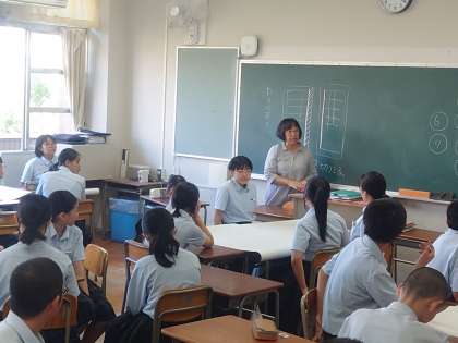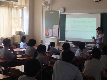 1限目2年生は前半に、11月に実施される職場体験学習に向けた希望調査を、その後文化発表会の各分担に分かれて、担当の先生の指示のもと取組を行っています。