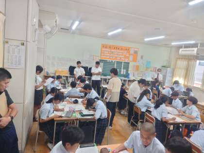本日4限目に、インターンで大学院から来ている実習生の研究授業が行われました。大学の先生方に加えて、本校の多くの先生も参観にきていました。
