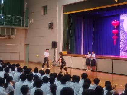 午後からは体育館に全校生徒が集まり、芸術鑑賞を行いました。