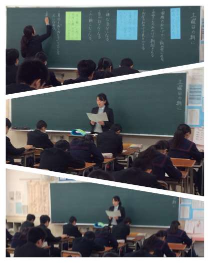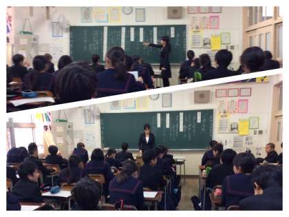 午後からは、5限は2年4組で大西先生が、また6限は1年2組で江唐先生が道徳の研究授業をしました。