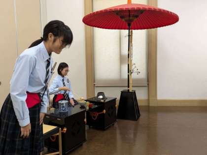 本校の茶道部のお手前の様子です。緊張もありますが、日々の稽古の成果を発揮しています。