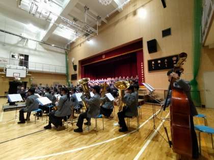 本日は、堀江小学校西学舎で、吹奏楽部が地域の皆様への感謝の気持ちを伝えるためのコンサートを開催しました。約400名のご参加をいただき、「元気をもらった」「心が明るくなる演奏だった」「これからも応援するよ」といった、ありがたいお言葉をいただきました。これからも、よろしくお願いいたします。