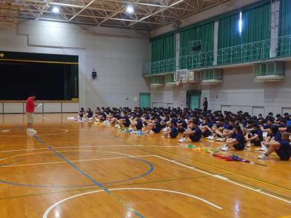 いよいよ明日が体育大会です。予行はできませんでしたが、3年生は体育館で学年演技の練習と、本番に向けた最終確認を行っています。先生から成功に向けた熱いメッセージが送られていました。