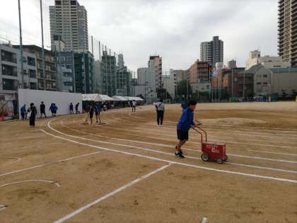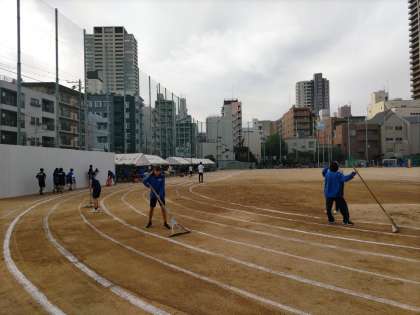 係の生徒が早朝より登校し、グラウンドの整備などをしてくれています。ありがとう。