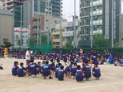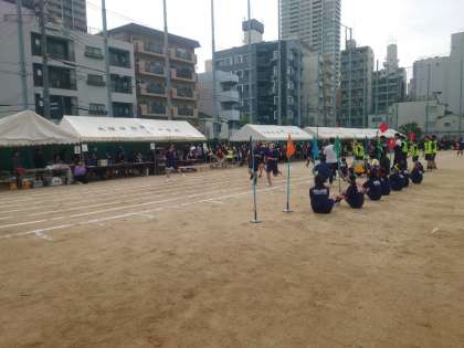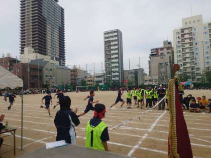 続いての競技は、トラックを半周する100m走です。各係生徒たちも、予行を行っていない中ですが、テキパキと動いています。