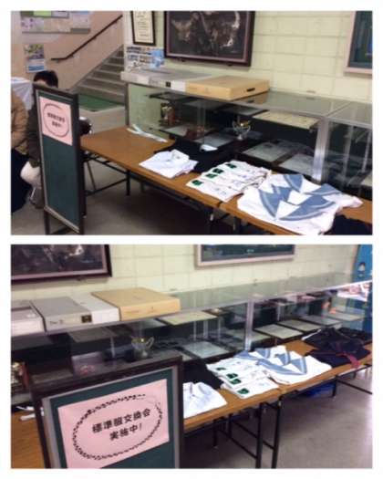本日(16日)より22日(火)まで3年生は進路懇談、1・2年生は学期末懇談が行われます。そして、PTAではその時期に合わせて、PTA図書の貸出(PTA図書委員のみなさん)と標準服の交換会(PTA各学年委員のみなさん)が行われています。寒い玄関で行っておりますが、温かいご協力をお願いしたします。