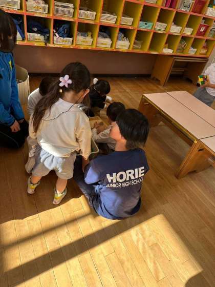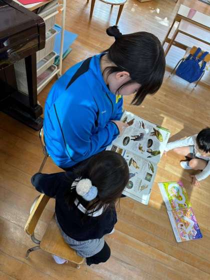 花屋では水やり、園児たちと一緒に遊んだり本を見せてあげたりしています。時間が経つにつれて少しずつ慣れてきているようです。