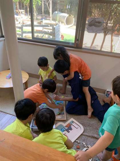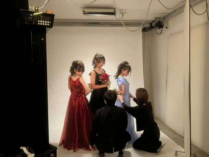 西区の社会福祉協議会での活動の様子、写真館での撮影体験の様子、保育園では園児たちが中学生先生を取り囲んでいます。なついてくれているようです!