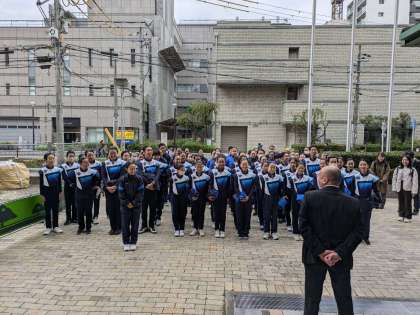 出発に向けて教頭先生より、「今まで頑張って努力したことは嘘をつかない、最高のパフォーマンスをしてきてください」とのエールが送られました。