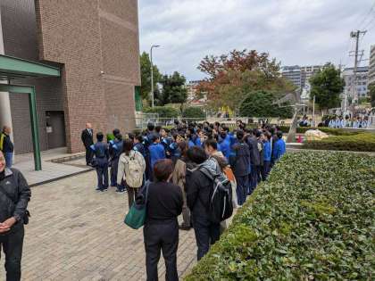 明後日開催される「全日本マーチングコンテスト」に向けて、本日は公式練習があるため吹奏楽部は、朝から大阪城ホールへ向かいました。