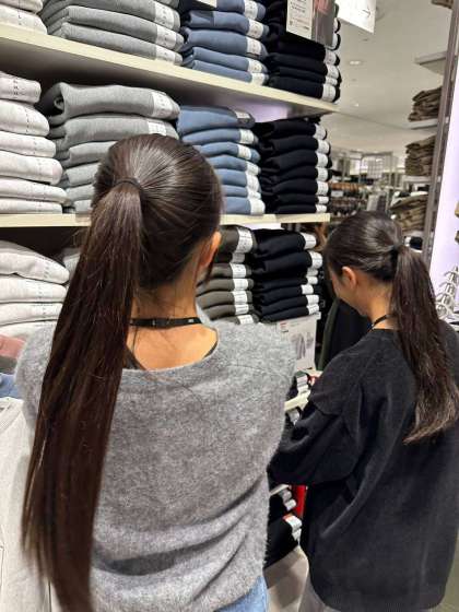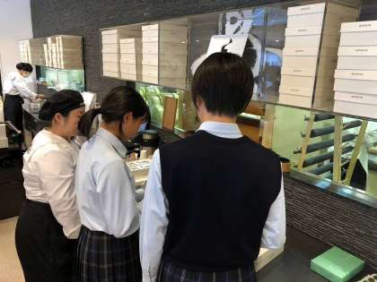 衣料品店では洋服の整理を、洋菓子店では商品の箱詰め作業を行いました。