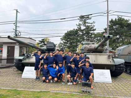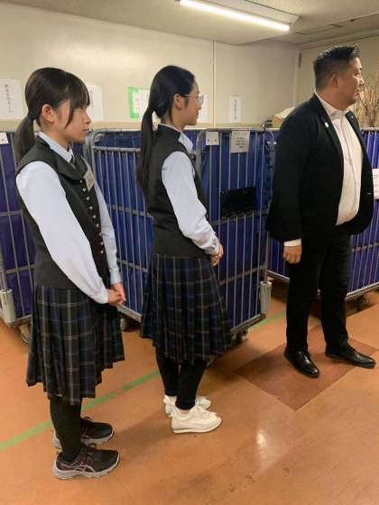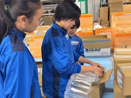 ホテルのバックヤードでの作業、製造業では荷崩れや破損防止の緩衝材を入れて箱詰めを行っています。自衛隊では、頑張ったメンバーが記念撮影です。