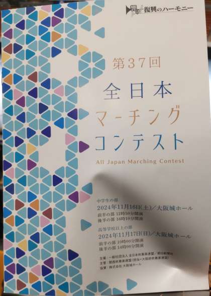 吹奏楽部が、本日、大阪城ホールで行われた第37回全日本マーチングコンテストに出場しました。結果は、みごと金賞をいただきました。日頃から応援してくださっている皆様、心より感謝いたします。ありがとうございました。