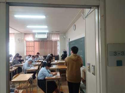 11月の進路懇談を終え、次回の懇談との間に行われる大切な実力テストです。真剣にテストに取り組んでいます。写真は3限目の英語の時間です。