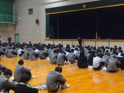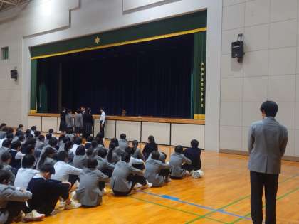 明日より期末テストも始まります。校長先生からもまずは、感染症予防を含めた体調管理が大事であるとの話から始まりました。そして、明日からのテストについて、2年生の職場体験学習は、多くの方の支えがあって実施された行事であること、最後にタレントのアン・ミカさんの経験から努力することで、自分の人生を上手く進んでいけることについて(校長室便りさくらに掲載)お話がありました。