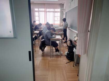 写真は各学年の数学のテストに取り組んでいる様子です。