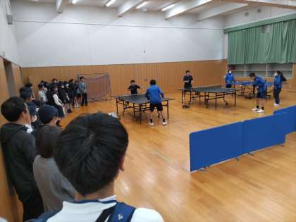 卓球部、バレーボール部、バスケットボール部の活動のようすです。