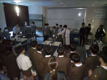 文化部の活動を見学している様子です。