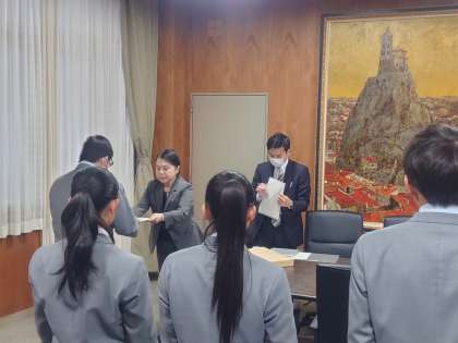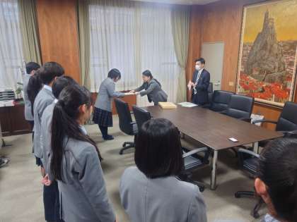 本校の校長室に西区の税務署長さんが来られ、9人が表彰されました。