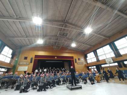 本日は、堀江中学校吹奏楽部と日吉小学校合唱団とのコラボとなっており、吹奏楽部の最初の曲では、合唱団が元気な歌声を響かせてくれました。