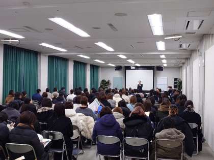 次年度入学する生徒も300人を超える人数となる予定です。たいへん多くの保護者の方が来校されています。