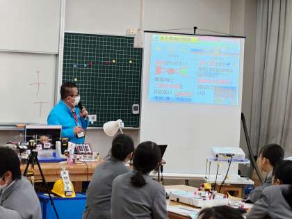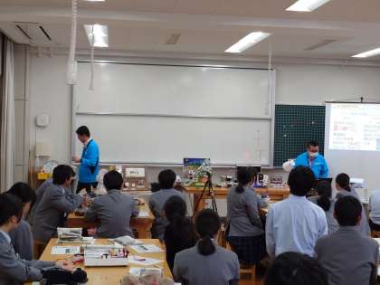技術分野の授業の様子です。本日は、関西電力の方を講師としてお招きし、電気やエネルギーの講義をしていただきました。