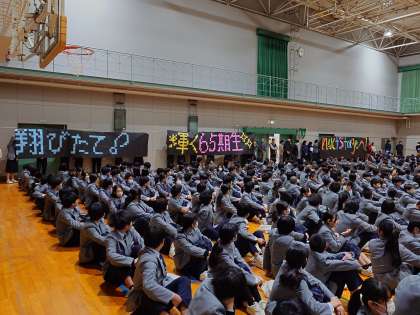 最後に在校生から、「翔びたて 輝く65期生 NEXT STAGEへ」の横断幕が披露され、3年生が花道を通って退場しました。