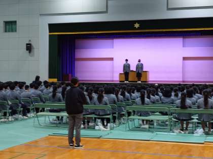 本日は、卒業式練習、在校生代表も参加しての予行が行われます。