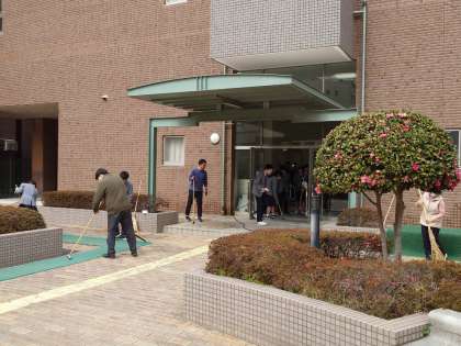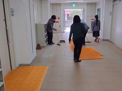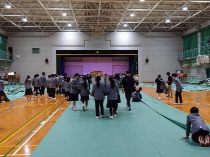 明日に向けて、校内と体育館の清掃、式場準備がすすめられています。