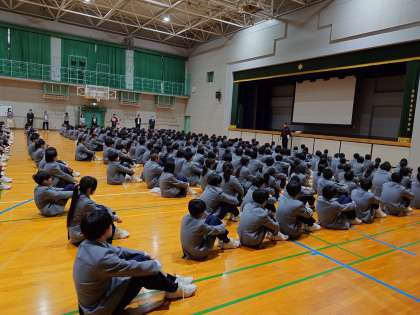 本日から約1週間は毎日全校集会が行われます。「生活指導点検週間」として、1年生は中学生としての新生活を、2・3年生は、新たな気持ちで1学期を過ごしていくために、守るべきルールや日々の学校生活についての確認を行います。