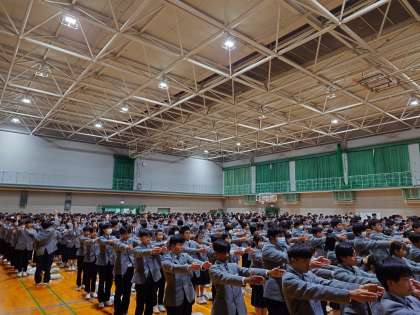 8時25分集会スタートとの連絡がありましたが、1年生にとっては、小学校の時とは異なることも多く、初めての経験であることもあり、集合・整列に時間がかかったため、遅れてのスタートとなりました。