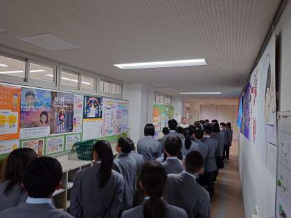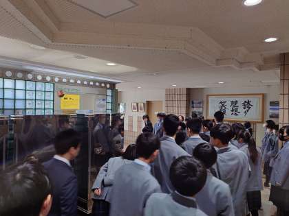 集会、学級活動を終え、4限目は校舎見学です。本校は、地上7階、地下1階という大きな校舎です。